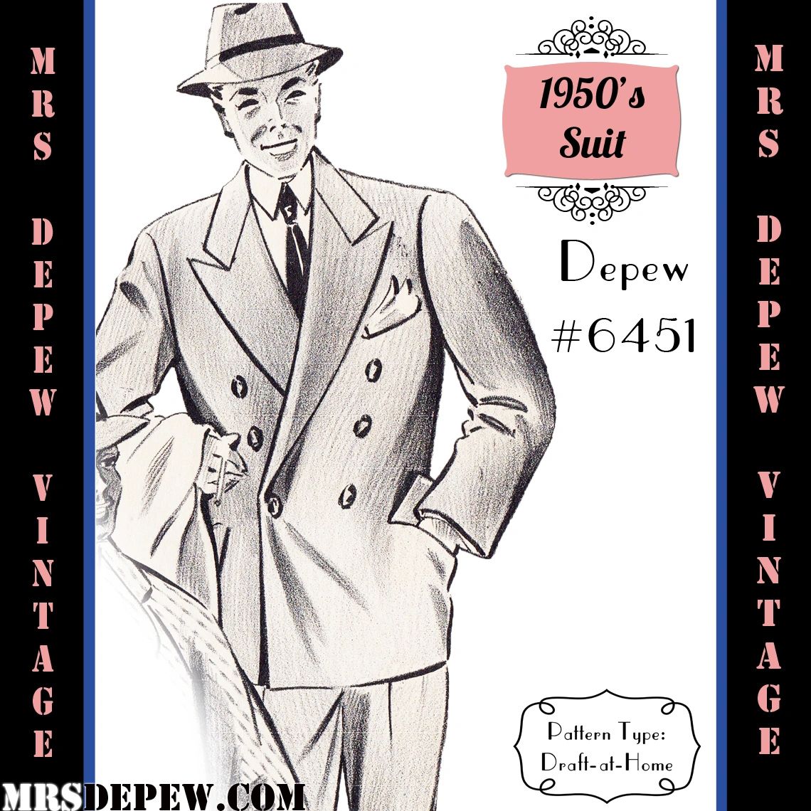 D A H Menswear Vintage Sewing Pattern 1950s Men S Suit Jacket And Trousers In Any Size 6451 Plus Size Included